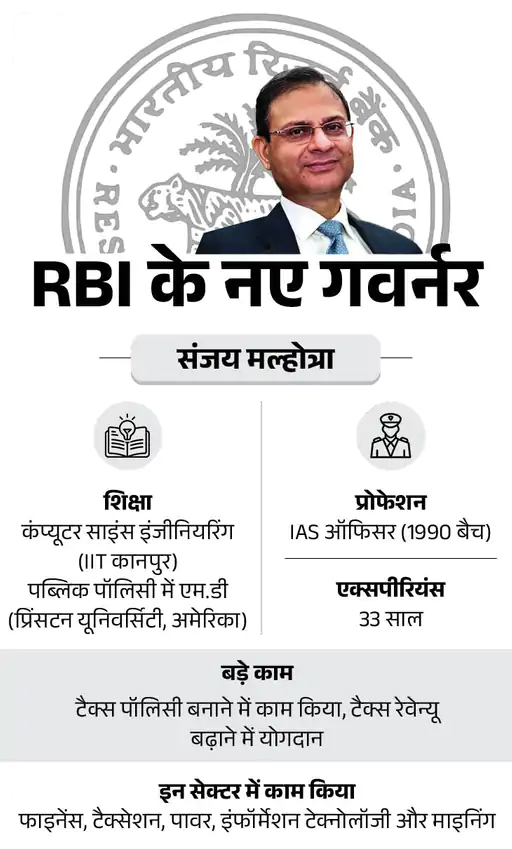 दास का कार्यकाल 10 दिसंबर 2024 को पूरा हो रहा है। 11 दिसंबर से मल्होत्रा गवर्नर का पद संभालेंगे। कैबिनेट ने आज 9 दिसंबर को संजय मल्होत्रा के अपॉइंटमेंट को मंजूरी दी है।