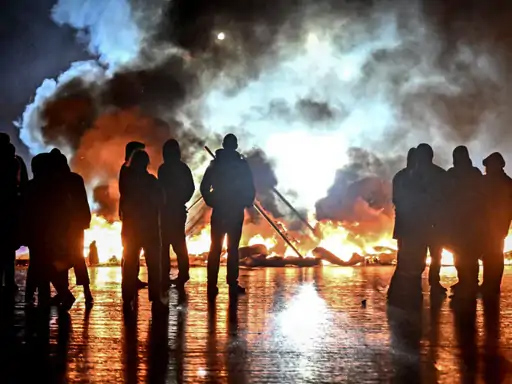प्रदर्शनकारियों ने सड़कों पर आगजनी कर ट्रैफिक को रोकने की कोशिश की, जिसे पुलिस और दमकलकर्मियों ने हटाया।