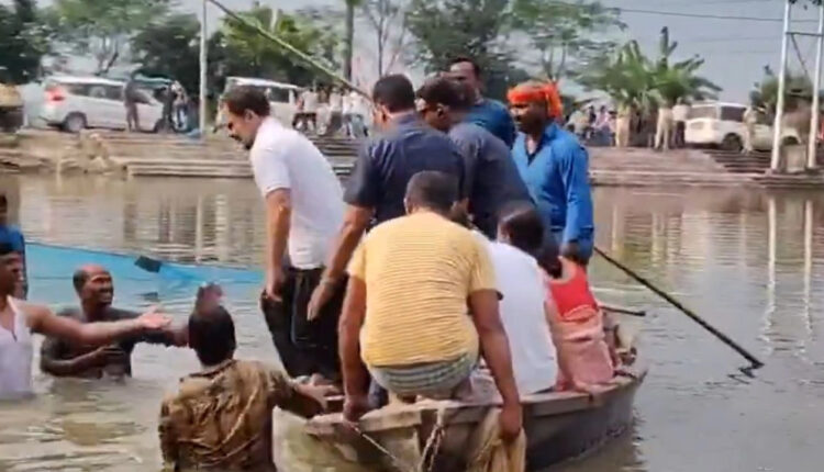राहुल गांधी नाव से तालाब के पानी में कूदे।