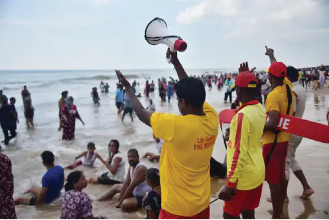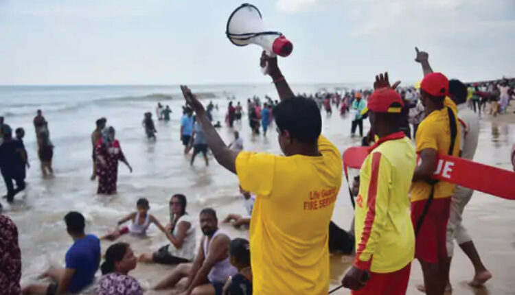 ओडिशा में पुरी बीच पर चक्रवात मोन्था को लेकर टूरिस्ट को समुद्र से दूर रहने को कहा गया।
