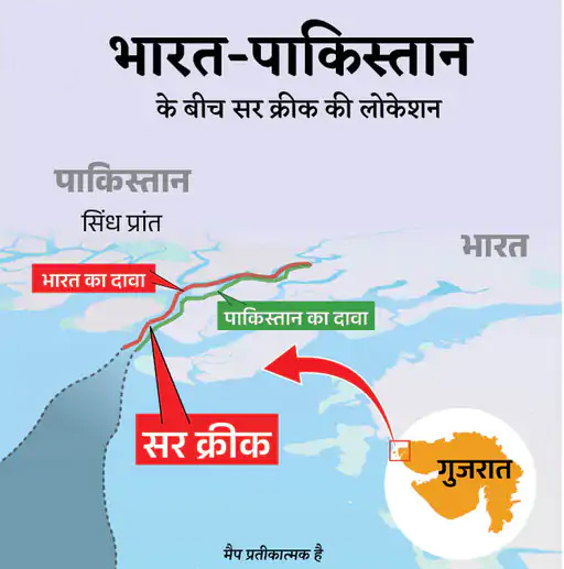 5. भारत ने थलवेग सिद्धांत को मानते हुए कहा कि बॉर्डर लाइन सर क्रीक के बीचों-बीच है। थलवेग सिद्धांत नदी और खाड़ी में इंटरनेशनल बॉर्डर तय करने का मानक है।