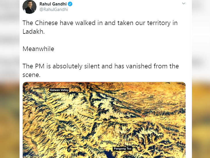 लद्दाख. पूर्वी लद्दाख के पास वास्तविक नियंत्रण रेखा (एलएसी) पर भारत और चीन के बीच तनाव कम होने के संकेतों के बीच आज दोनों देशों की सेनाओं के डिवीजनल कमांडर स्तर की बातचीत होगी। इस बीच कांग्रेस नेता राहुल गांधी ने सरकार पर तंज कसा है। राहुल ने ट्वीट कर कहा है कि चीनी हमारी सीमा में घुस आए लेकिन प्रधानमंत्री चुप्पी साधे हैं। उन्होंने इस मामले से दूरी बना रखी है।