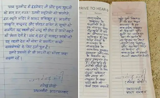 PM मोदी ने विजिटर बुक में मैसेज लिखकर हेडगेवार को श्रद्धांजलि दी