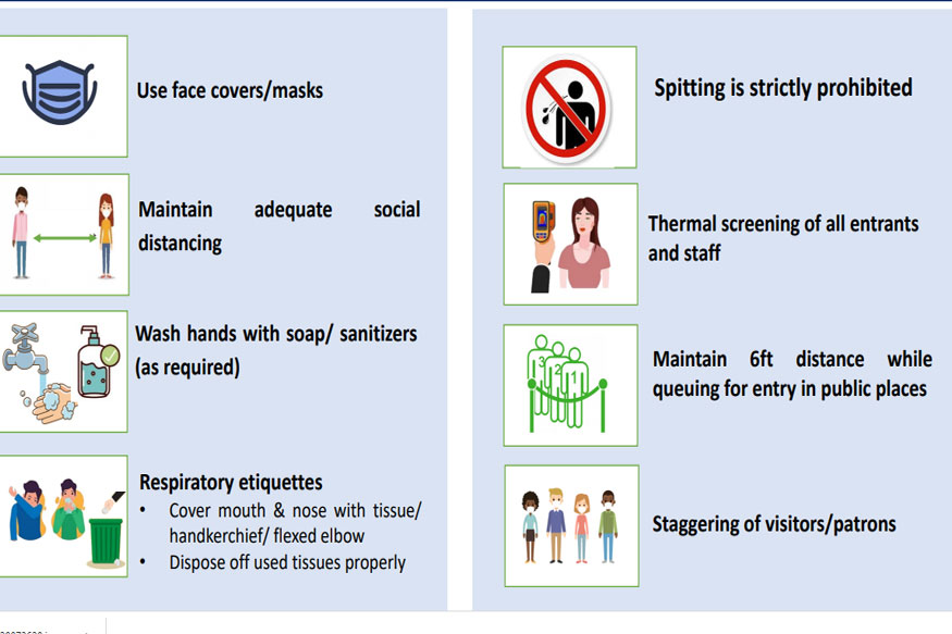 18. परिसर में मौजूद दुकानों और कैफेटेरिया में सोशल डिस्टेंसिंग का पालन हो.