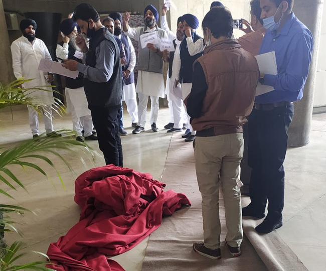अकाली विधायकों ने राज्यपाल के स्वागत के लिए बिछाया गया रेड कारपेट हटा दिया।
