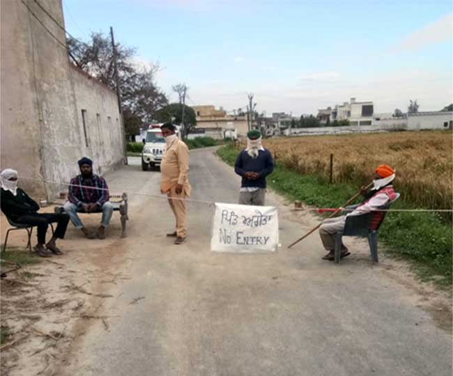 पटियाला के अगेता में गांव जाने वाले रास्ता पर ग्रामीणों का पहरा।