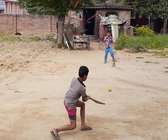 कर्फ्यू के दौरान बच्चे गलियों में क्रिकेट खेलते नजर आए।