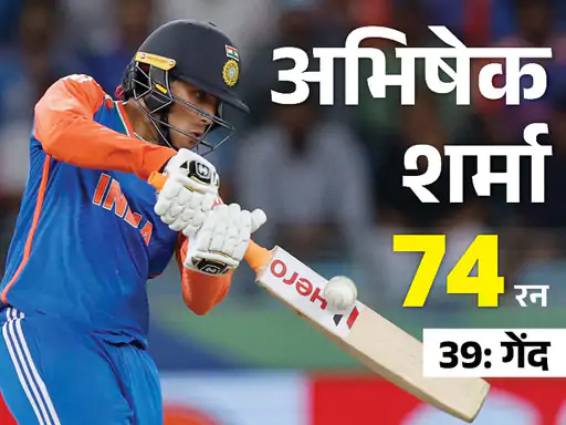 अभिषेक शर्मा ने 39 बॉल पर 74 रन बनाए। उनकी पारी में 6 चौके और 5 छक्के शामिल रहे। अभिषेक ने शुभमन गिल (47 रन) के साथ 59 बॉल पर 105 रन की ओपनिंग साझेदारी की। इस साझेदारी ने भारत के रन चेज को आसान कर दिया।