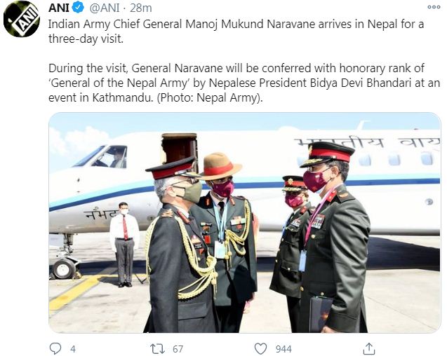 नेपाल द्वारा एक नया राजनीतिक नक्शा जारी किये जाने के बाद दोनों देशों के बीच संबंधों में तनाव आ गया है। इसके बाद से भारत की ओर से यह पहला उच्च स्तरीय दौरा है। सेना प्रमुख के दौरे से नेपाली रिश्ते की नई शुरुआत के बीच एक और अच्छी खबर है।